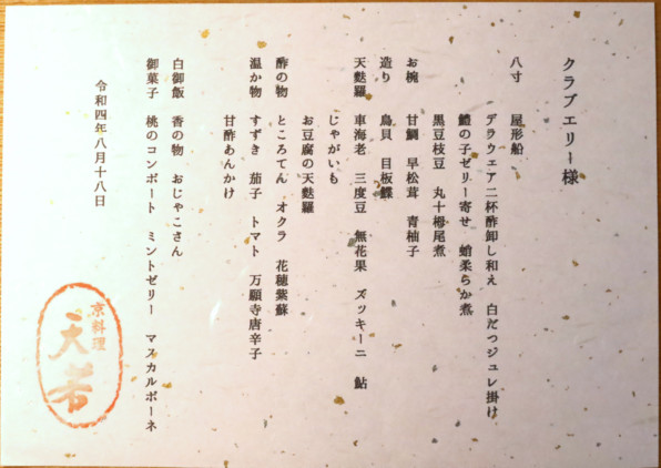 ●夏の食材たっぷり、涼感も感じさせて、すてきなもてなしをしてくださいました。