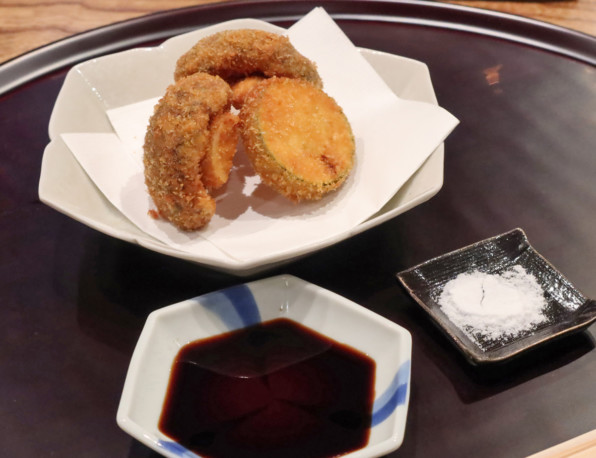 ●松茸のフライ。ズッキーニのフライと。