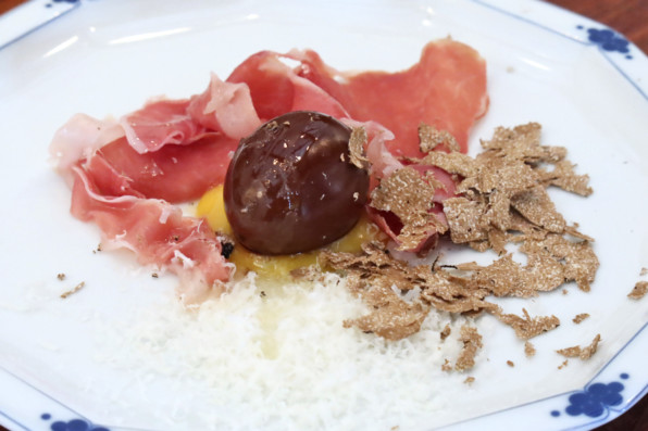 希少になったパルマの生ハムと、トリュフばさばさ。香り立つお料理でした。