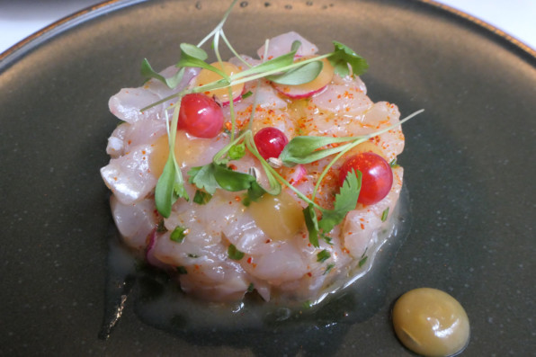 ●わたしの選択は一本釣りの鯛、土佐酢仕立て。tozazuが何かわからなかったのだけど、土佐酢と言われて驚いた(*_*)(*_*)