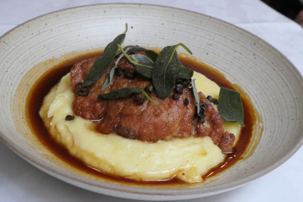 RIS DE VEAU AU BEURRE NOISETTE, PURÉE DE POMME DE TERRE, JUS DE VIANDE, CÂPRES & SAUGE