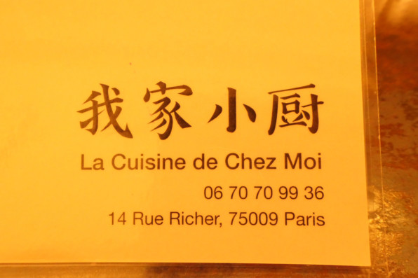 ●9月28日夜、パサージュ界隈から歩いて行ける、9区の中華でおいしそうなところを探して「我家小厨 La Cuisine de Chez Moi 」というところ。