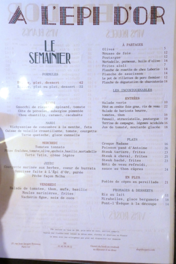 ●9月30日(金)は「L’Epi d’or レピドール」、ジャンジャック ルソー通りにある、 Jean-François Piège ジャンフランソワ・ピエージュさんのお店でデジュネです。