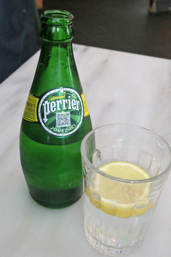 ●ペリエです。氷なしにしてもらいますが、レモンは入ってきたら、まあそれもよいです。