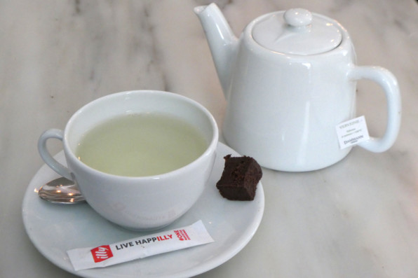 ●ヴェルヴェーヌのアンフュージョンを食後の飲み物に。ショコラが添えられていました。