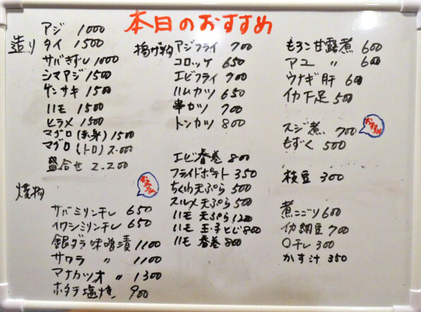 ●手書きの「本日のおすすめ」に、