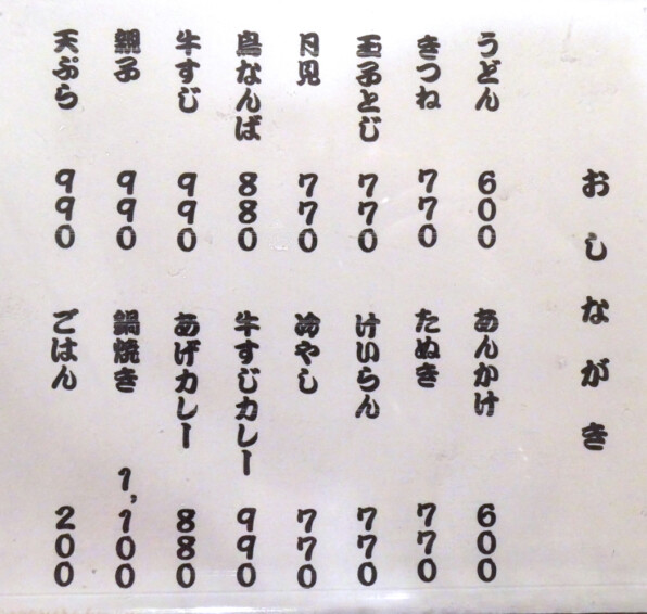 ●うどんメニューはこれ。