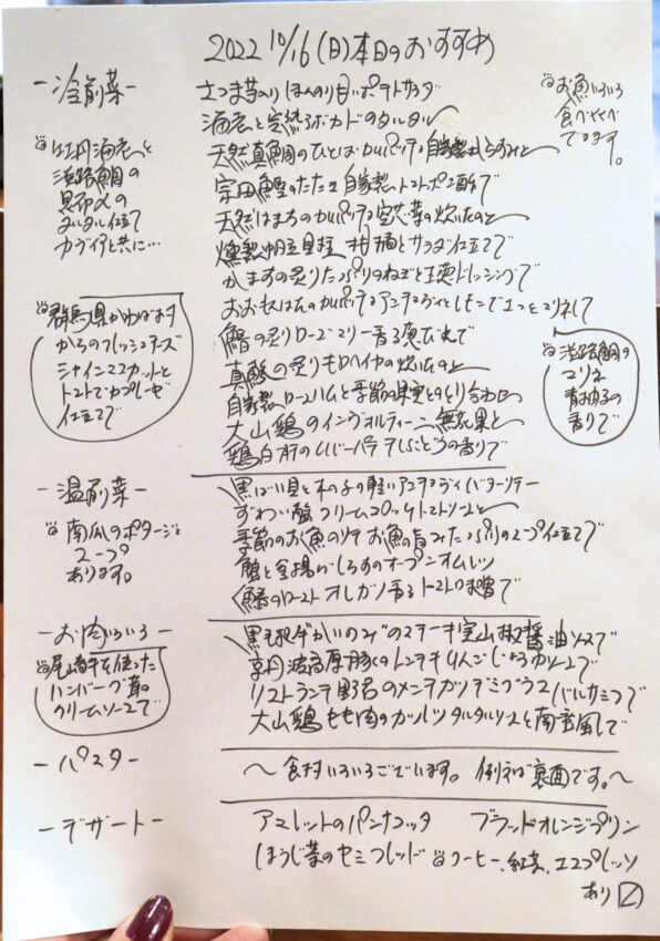 「リストランテ 野呂」10月16日(日)20時半~、訪問 294回目。