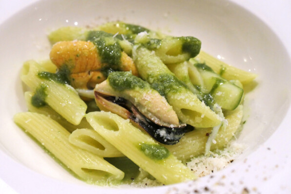 ●ペンネ ムールと釜揚げしらす、ズッキーニのバジルソース和え