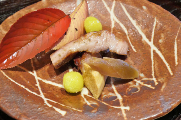 秋の風情たっぷりで登場したチャーシュー炭火焼き、