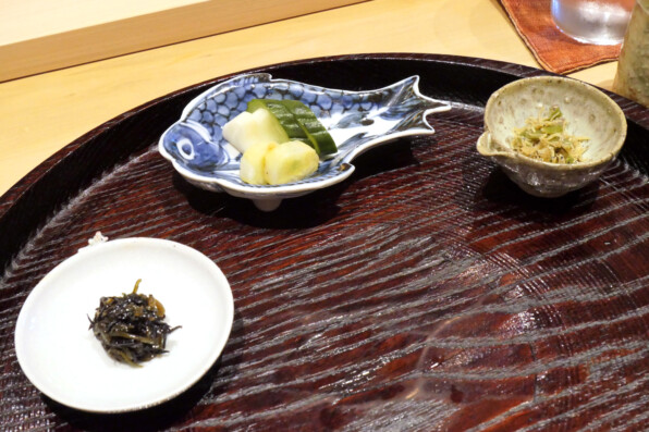 茗荷梅酢漬け、長芋紹興酒漬け、銀杏。
