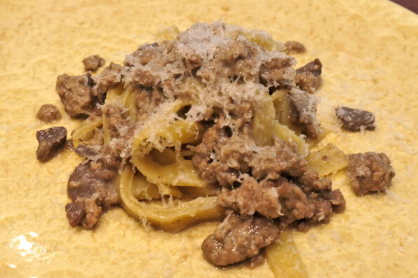 ●5皿目、自家製のタリアテッレ。七谷鴨のラグー。