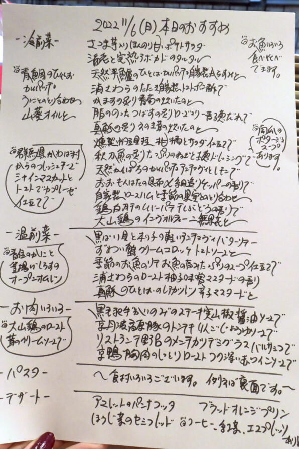「リストランテ 野呂」 11月6日(日)20時半~、訪問 297回目。