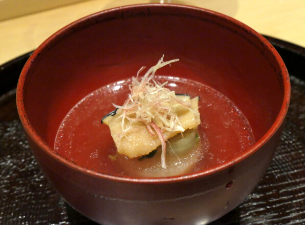 おだしに、お得意、中華の清湯スープを合わせて強めの吸い地にして、くじらを引き立てるように仕立てていました。