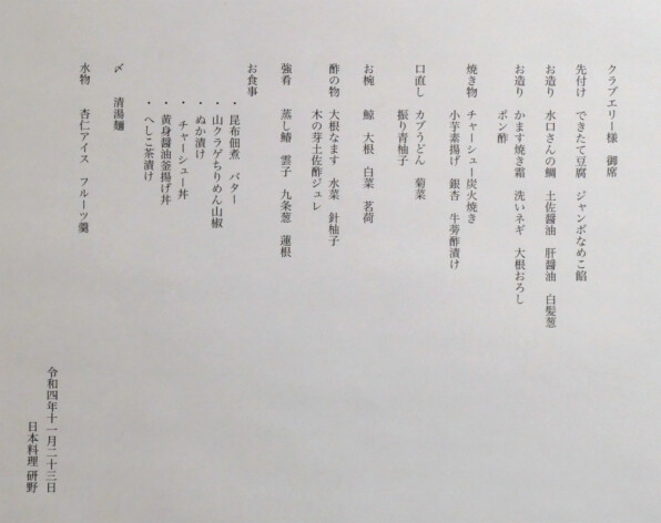 「日本料理 研野」さん、12月もまた楽しみに伺います。