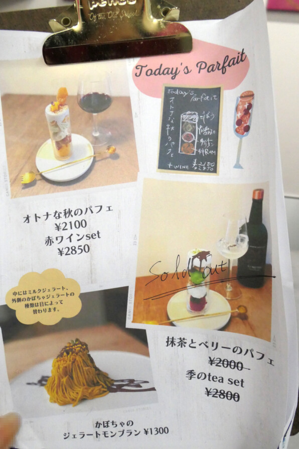 ●秋のパフェ(ジェラート4種類入り、赤ワイン付きもあり)やかぼちゃのジェラートモンブランなど、お店でいただく他のメニューもおいしそうで、また伺わねばなりません(^o^)/