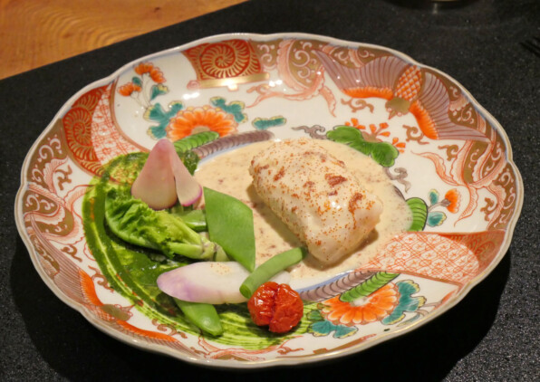 ●鯛に包まれたこっぺ感と、帆立貝のムース。