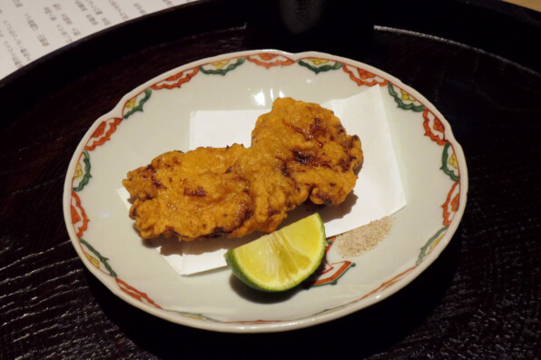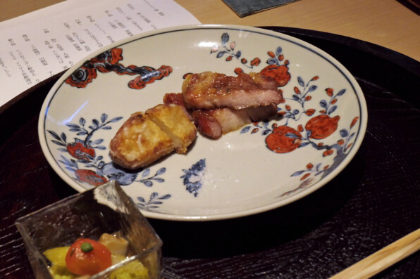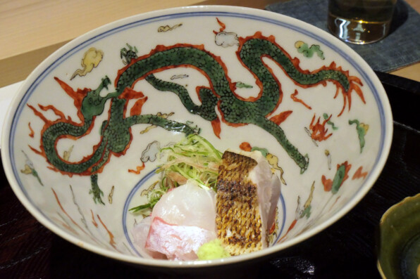 ●龍や鳳凰など霊獣がたくさんあしらわれた器で水口さんの鯛と、かますもまたおいしかったー