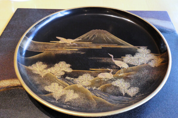 ●いとも美麗な蒔絵のお皿がセットされ、