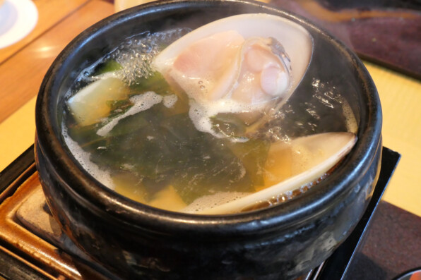 ●はまぐりと筍、(別皿で)薄いしゃぶ餅、七種の野菜でした。