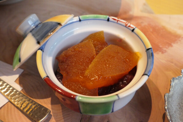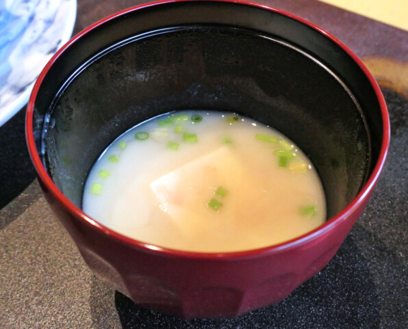 ●止椀でやっとこさ白味噌椀です。あえてここまで白味噌椀出さなかったという心遣い。