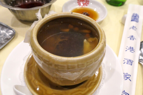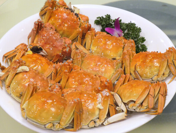 上海蟹と熱々の薬膳スープをいただくお昼、