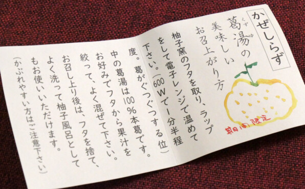 ●「中村軒」さんの、柚子釜の葛湯、「かぜしらず」