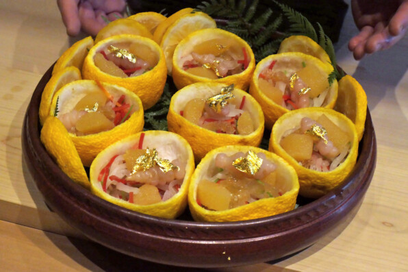 ●1月スペシャル料理で、柚子釜も黄金の飾り、