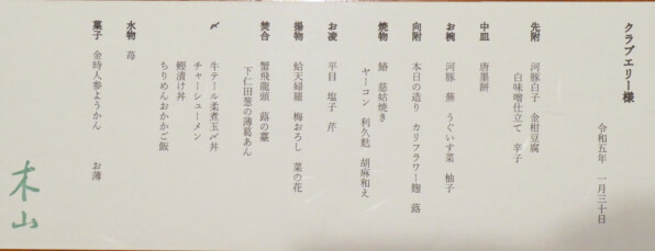 クラブエリー@いつもの「木山」さん、また2月にお願いしています。