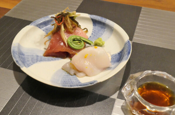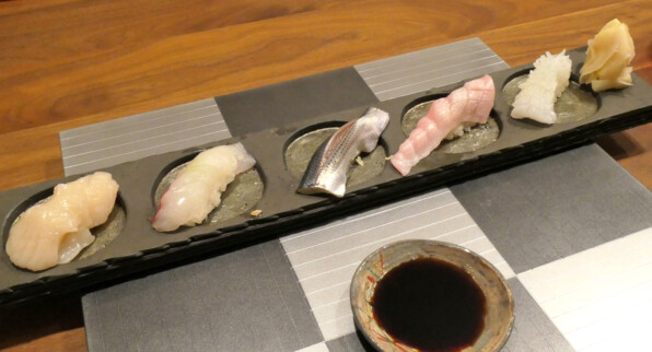 ●2階席、お寿司はこうしてまず5貫供され、