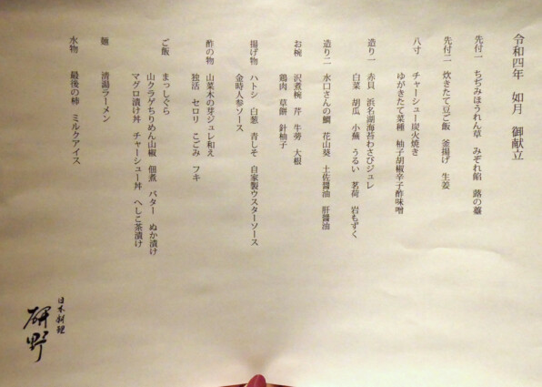 「日本料理 研野」さん、来月もまた楽しみに伺います。
