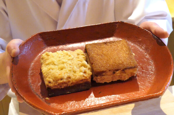 ●ハトシとは何か?? 興味しんしんでしたが、これは長崎伝来のえびすり身トースト揚げといったもので、