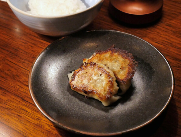 ●滋賀県のこしひかりのご飯と共に、すぐき餃子。