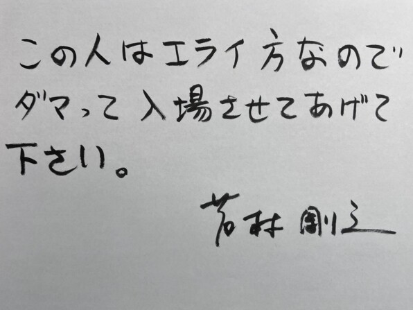 ●なかなか訪れないわたしに、「SOU・SOU」目ピカ社長=若林剛之さんから送られてきた天下の入場パス。