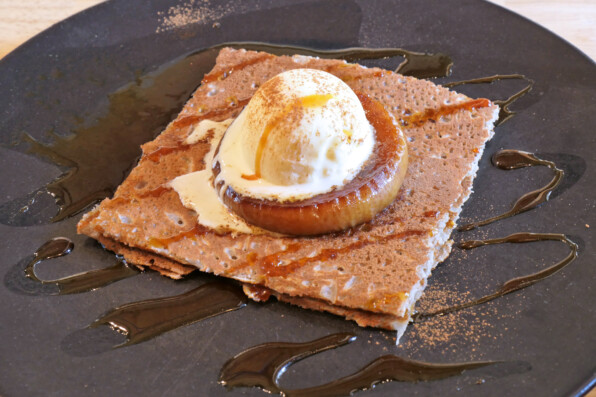 ●デセールもガレット生地で、ガレットタタン 1350円。りんごのカラメリゼに、カラメルブールサレ。
