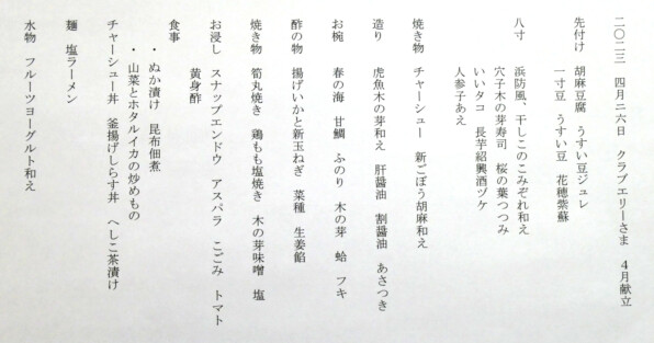 献立だけでも、そのうち貼り付けます。