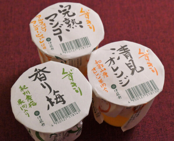 ●とりわけわたしが感じ入ったのはくずきりシリーズです。303円~324円で、梅の甘露煮や、コンポートのオレンジスライスがごろんと入っていたり濃いマンゴージュースに浸っていたりします。風味明確、つるりと食べやすくて美味。これからの季節にすごくいいと思います。これまた必ずいただきたいと思います。