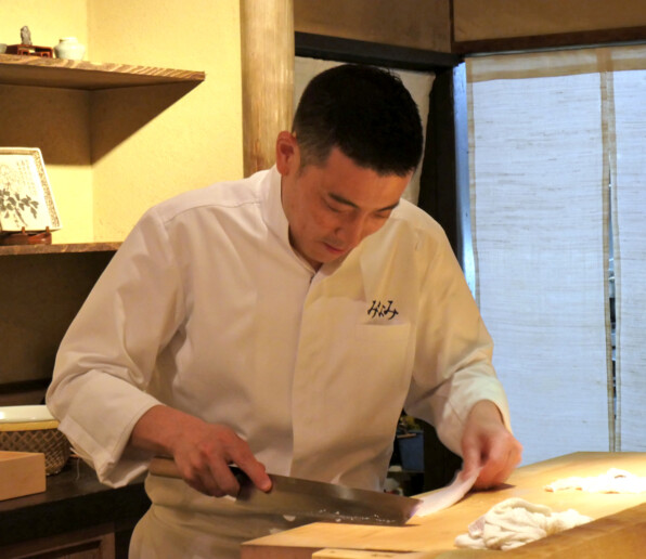 ●しゃっしゃっと鱧の骨切りをする手際も見事な、店主の南 建吾さん。