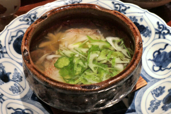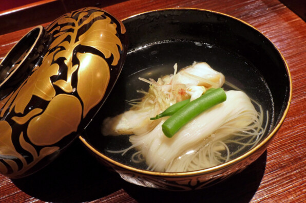 ●焼いたすずきのうしお汁、花柚子。