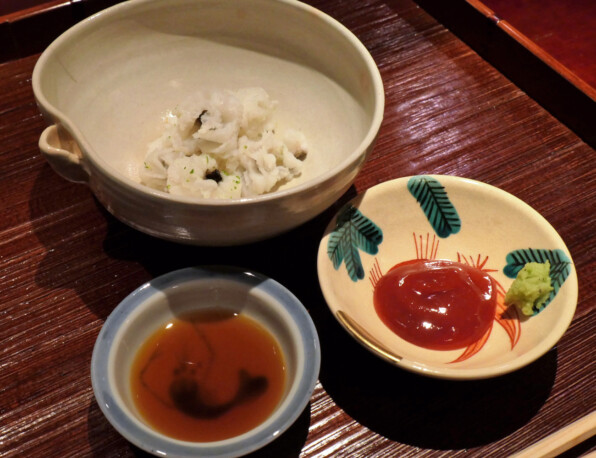 ●鱧は淡路島のものということ。お湯に落として引き上げたのを、ほんのり温かい状態で出してくださいました。