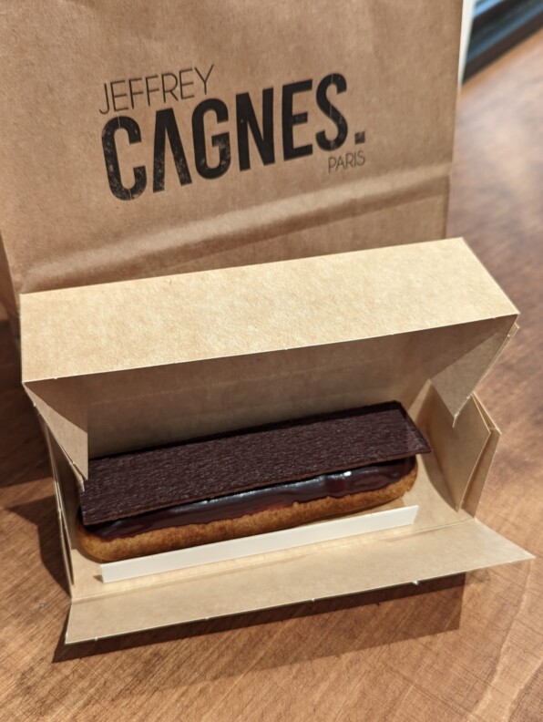 エクレールショコラ、上に一枚薄いショコラがのせられています。