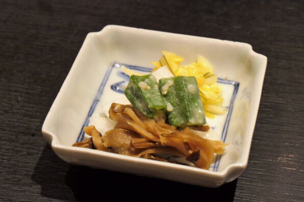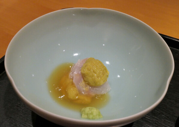 岐阜県多治見市のお酒「三千盛」(みちさかり)を食前酒にひと口いただいた後、写真の、