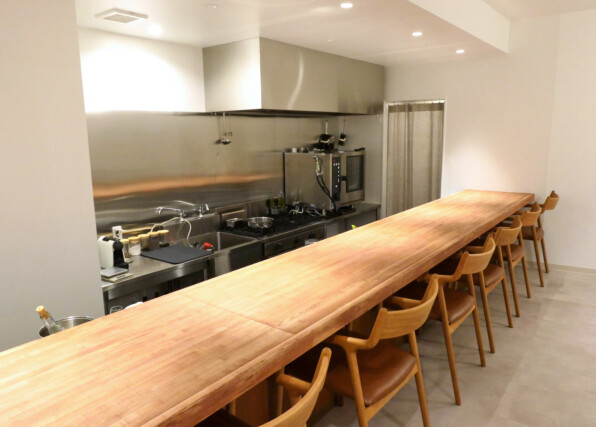 ●中はこんな風にすっきりしています。カウンター8席。テーブルもありますが、今はそこにのせきれないほどのお花でいっぱいの状態です。