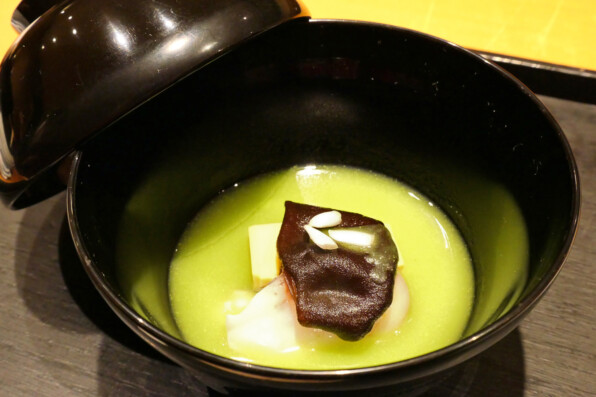 ●うすい豆すり流し。雉のだしを一番だしで割った吸い地。