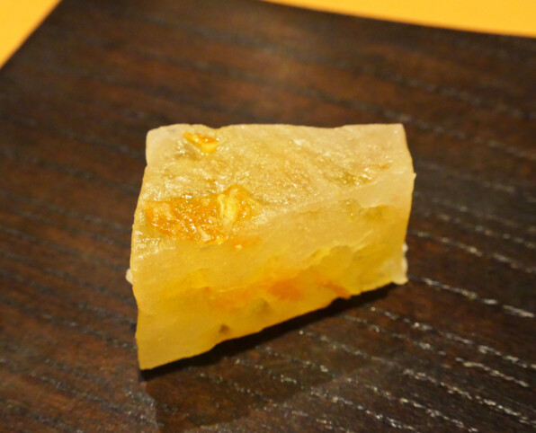 赤甘鯛、下に玉子豆腐。上にきくらげ、花柚子。