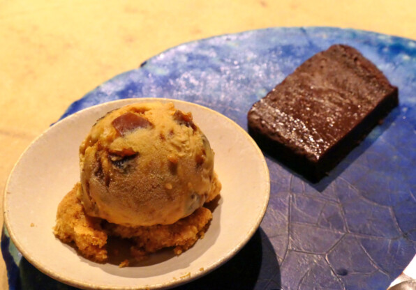 ●クリームチーズのアイスクリームに、「モーネ」=月を象ったふわふわ生地。柑橘の酸味と、底のアールグレイのジュレが香りを添えて、粋なデザートでした。