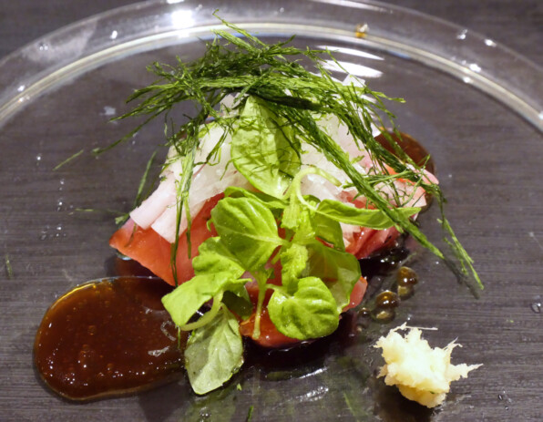 ●サラダ仕立てのようなお造りは、三重県からのきはだまぐろ。
