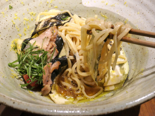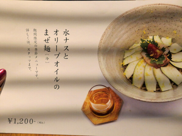 水茄子とオリーヴオイルのまぜ麺、冷製。