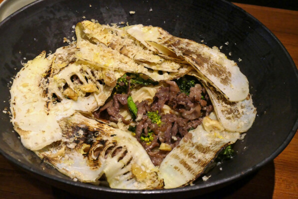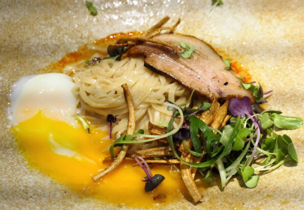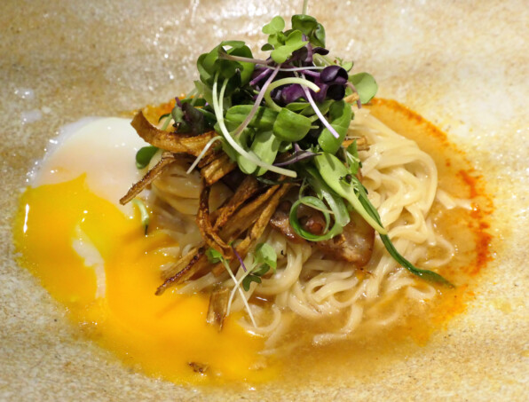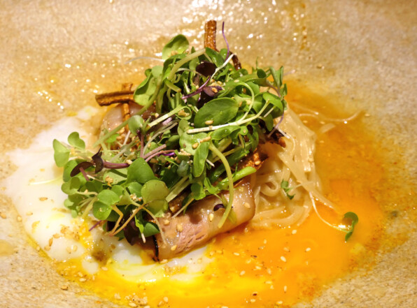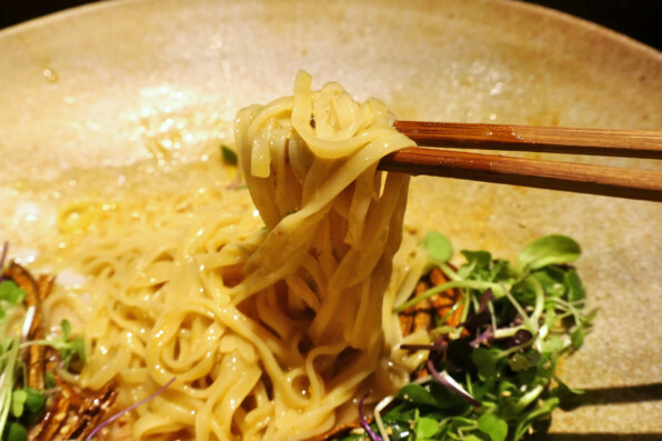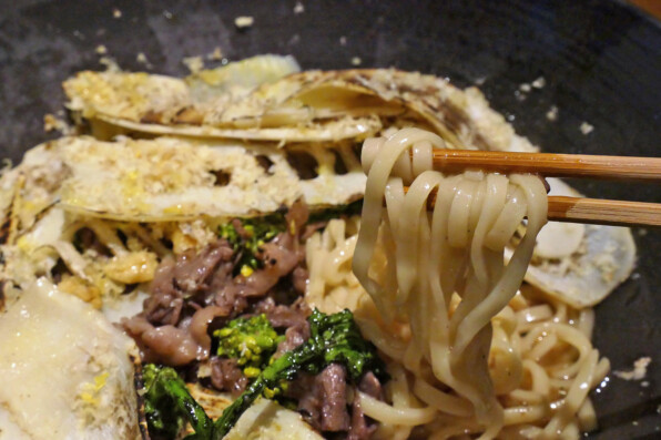 塚原の白子筍と牛肉と菜の花のまぜ麺 2380円。