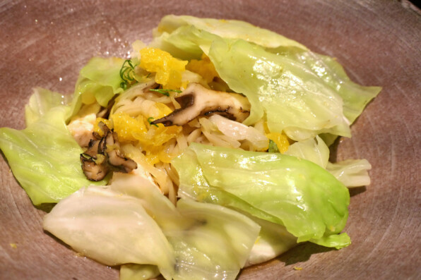 春キャベツと柑橘とハーブチキンのまぜ麺、1680円。